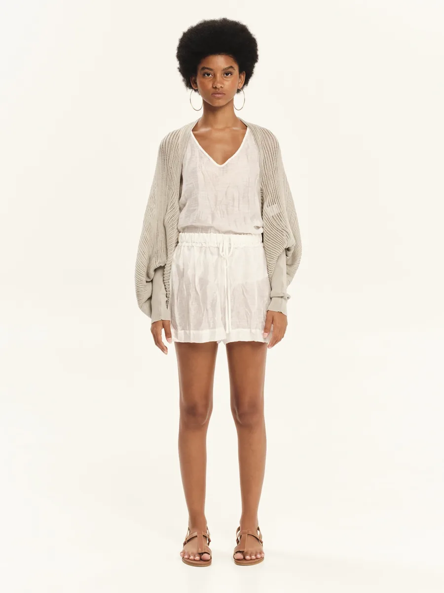 Πλεκτό μακρυμάνικο μπολερό από 100% ελληνικό βαμβάκι υψηλής ποιότητας που φέρει τη διαχρονική πλέξη “Archetypes”. Έχει άνετη εφαρμογή που καλύπτει τους ώμους με τα μανίκια να αγκαλιάζουν τα χέρια απαλά με την κρουστή, rib πλέξη τους. Ένα no – season κομμάτι, ιδανικό για casual chic σύνολα.