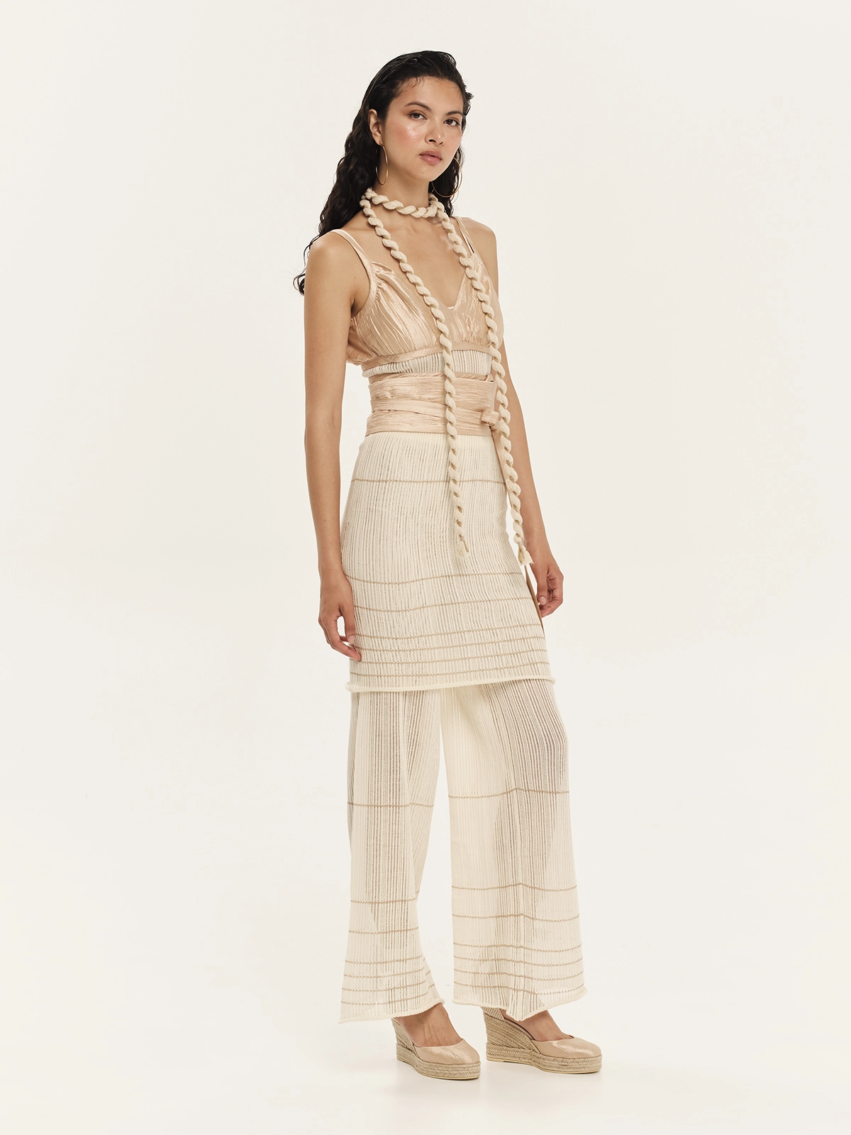 Κρουαζέ bralette από crinkled rayon ύφασμα με ιριδίζουσα γυαλάδα. Έχει κολακευτική “V” λαιμόκοψη με λεπτές τιράντες και δένει γύρω απ’ το σώμα δημιουργώντας ένα resort και beachwear style. Συνδυάζεται ιδανικά με τα κάτω μέρη της συλλογής συνθέτοντας μοναδικά, cool και stylish καλοκαιρινά looks.