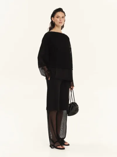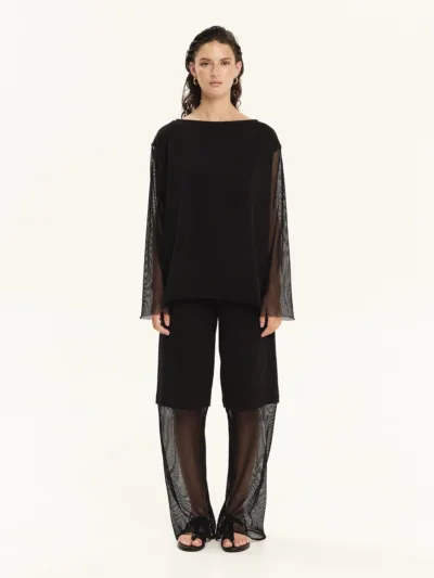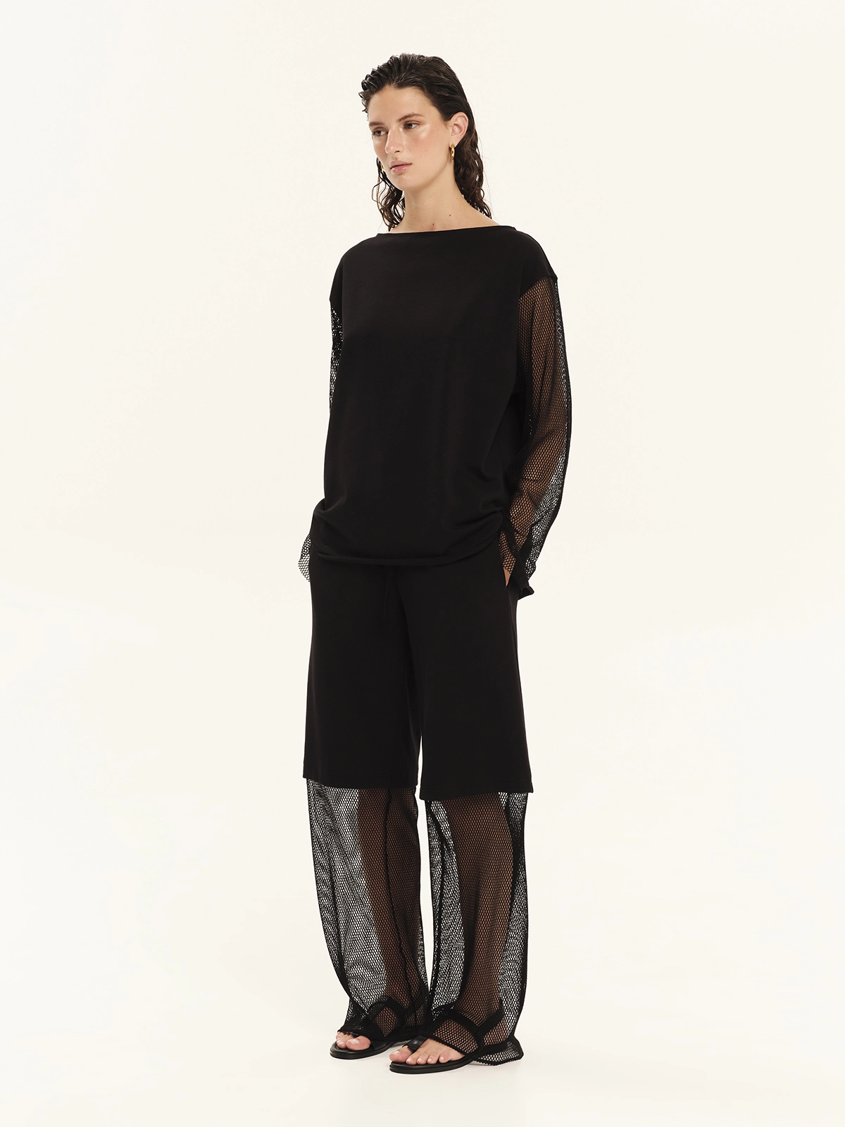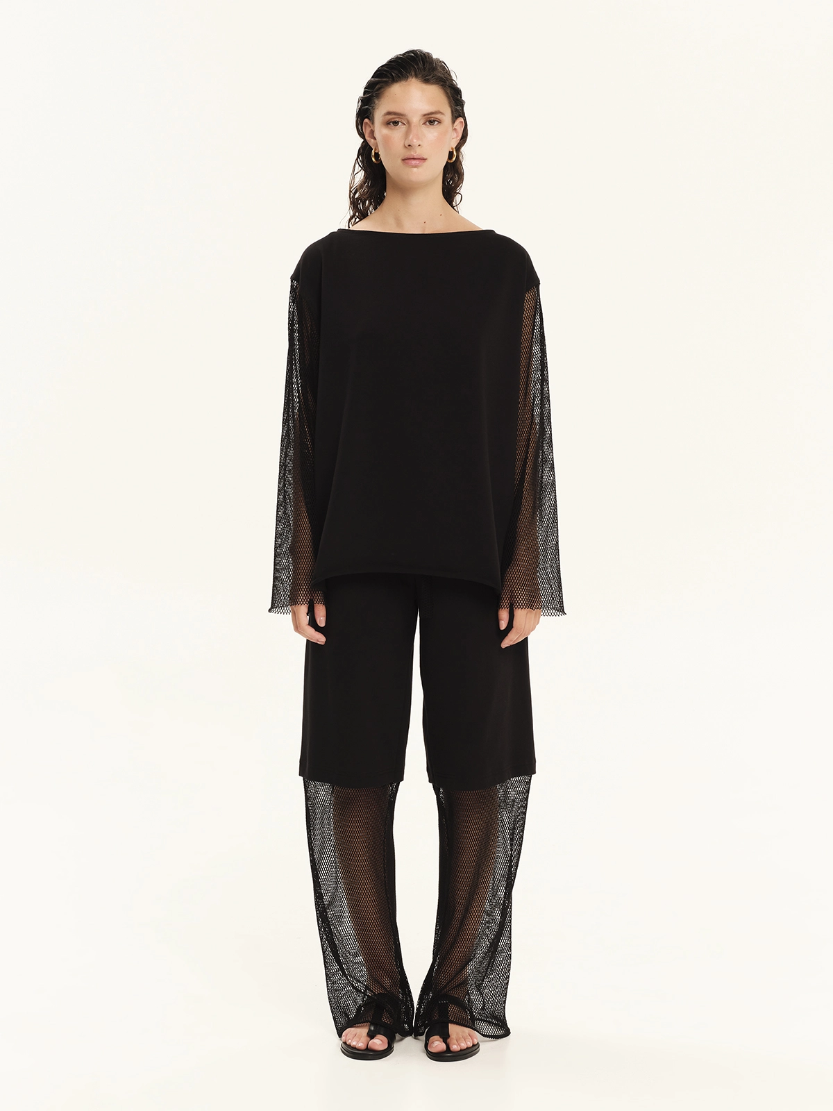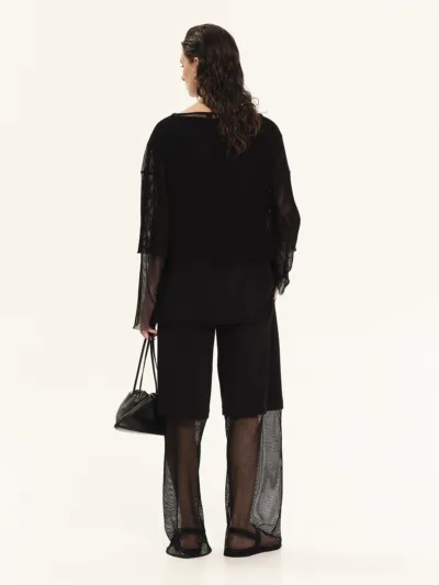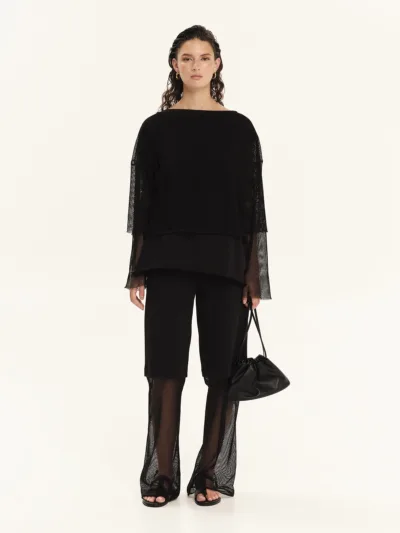 Long-sleeved blouse made from 100% cotton sweatshirt fabric combined with cotton net. It features a relaxed fit with a round neckline and sheer sleeves. Easy to wear, practical and effortlessly stylish, it is an ideal choice for cool, laid-back looks.