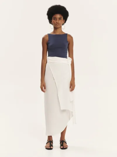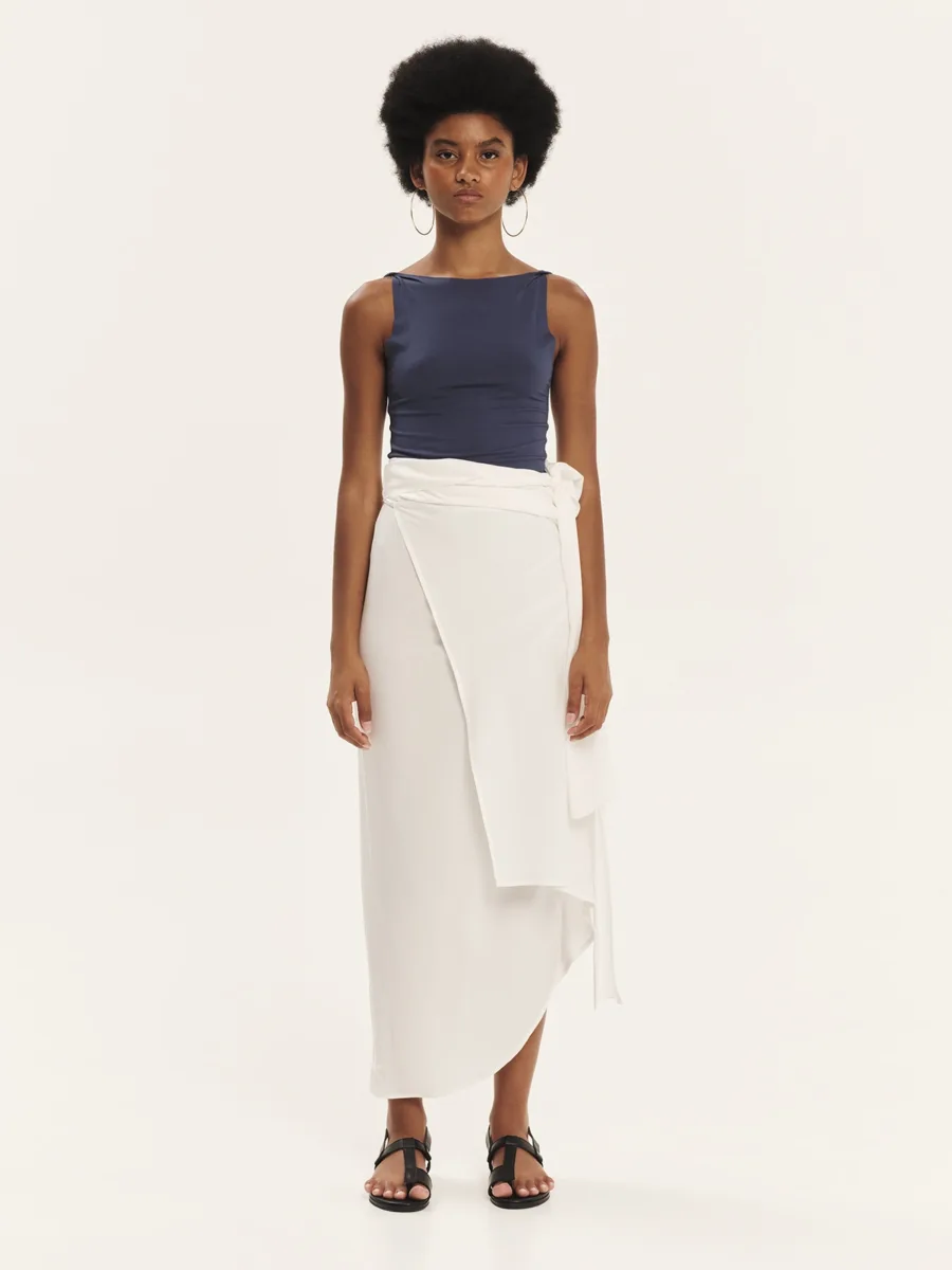 Sleeveless top with “V” shaped back made of elastic LENZINGTM ECOVEROTM viscose in a fitted shape. Comfortable and flattering, it hugs the silhouette and can be combined perfectly with the pieces of our collection for every day, stylish looks.